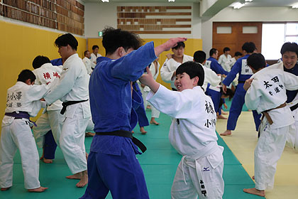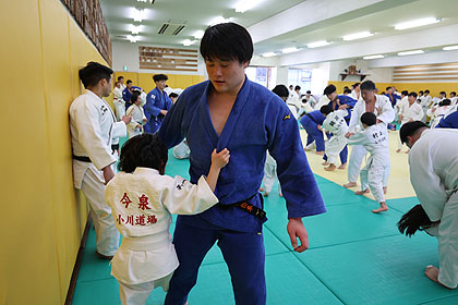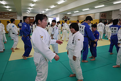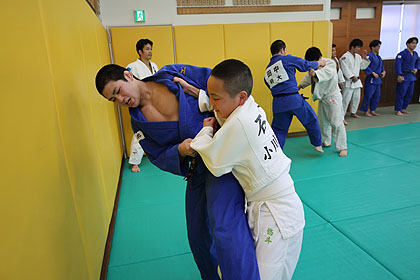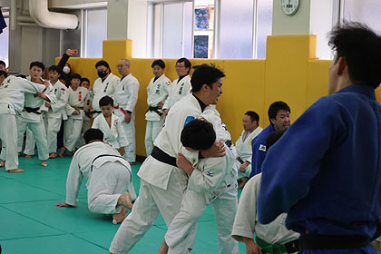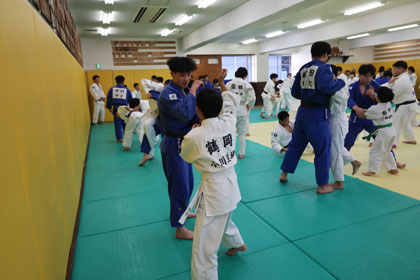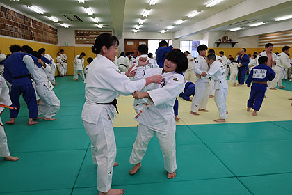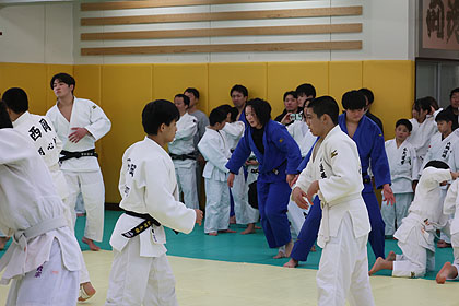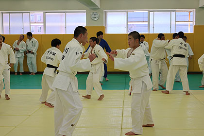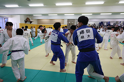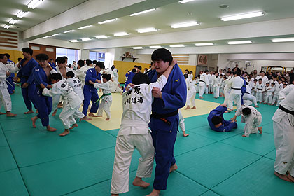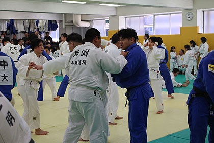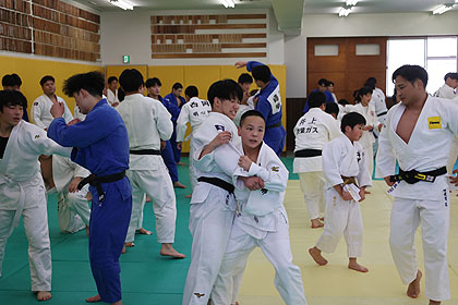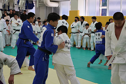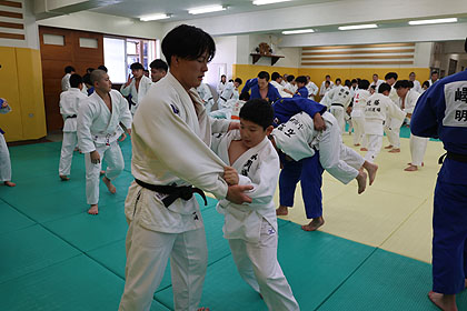 先ずは大学生達の胸を借りて大学生、先生と乱取り稽古 | |||