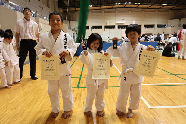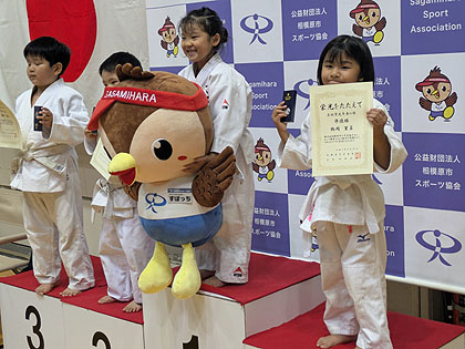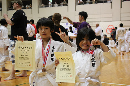 写真左から小学4年生の部第3位かなと、幼年の部準優勝りいな
